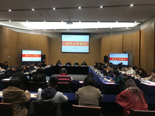 会上,教务处长张云良就本学期深化人才培养模式改革、提升人才培育质量等工作进行了整体部署,重点强调了修订人才培养方案、实施分类培养与辅修第二专业、推进省级一流课程申报、修订完善教学大纲、金钟奖比赛选手集训等教学工作。研究生处长刘杨就2021年学位与研究生教育、研究生招生等工作进行了总体部署,尤其强调了本学期在建立优秀研究生课程体系、提升研究生实践能力、实施慕课融合教学工程等工作方面的计划与目标。随后,各教学单位与五大学院负责人就近期教学工作上的情况做了汇报与交流,督导组钦丽丽教授对本学期开学情况进行了点评,各职能部门负责人围绕教学工作做了交流。