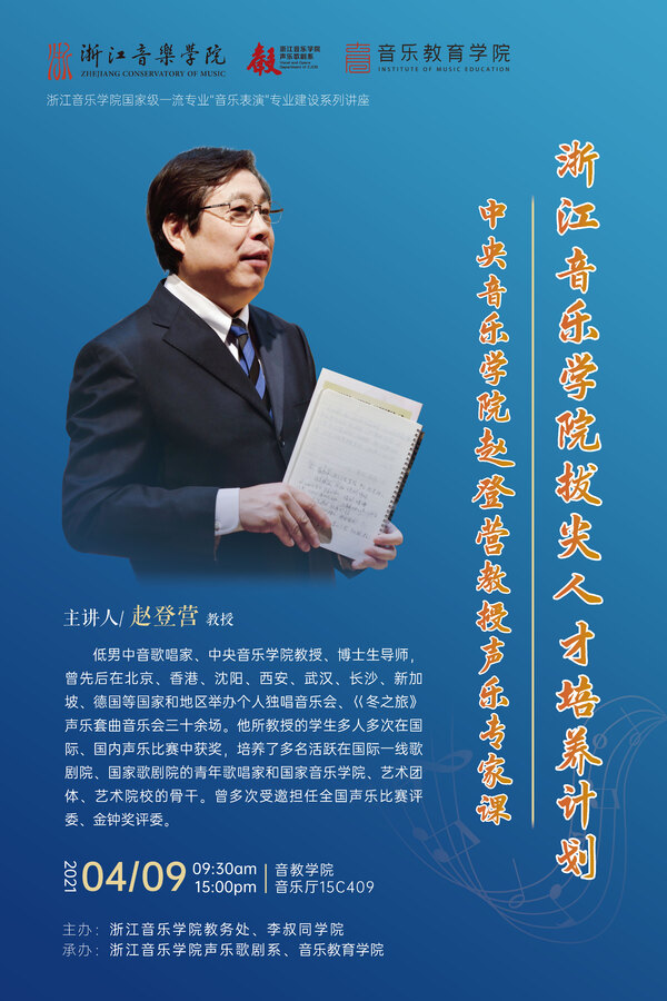 浙江音乐学院拔尖人才培养计划中央音乐学院赵登营教授声乐专家课
