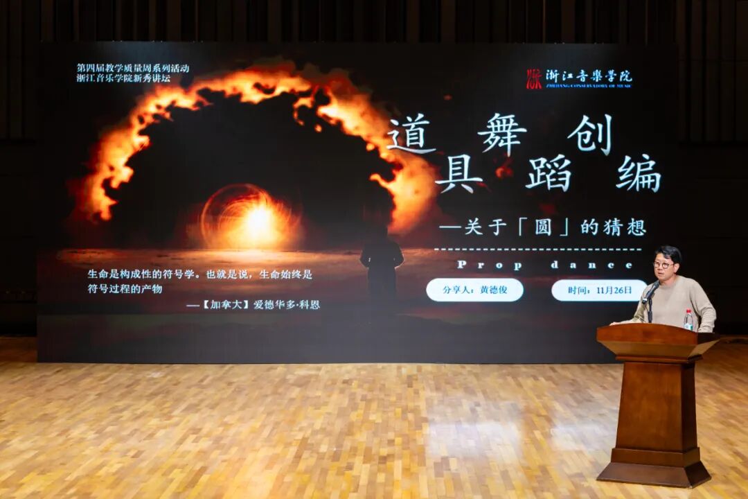 教坛新秀黄德俊副教授围绕《道具舞蹈创编 —— 关于「圆」的猜想》,以 “火焰圆环” 为视觉主题,展示道具与舞蹈表达、课堂教学融合的成果。