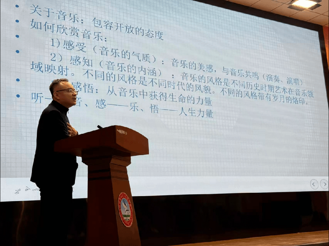 这次我们走进了藏族中学的课堂,在《视唱练耳》课上,我以趣味互动结合科学训练,激发孩子们对音乐基础要素的兴趣;在《西方弦乐音乐赏析》中,我借助经典片段赏析,深入浅出地介绍弦乐历史与特点,为雪域高原的孩子们推开一扇了解西方古典音乐的窗。尽管课程内容有些理论抽象,但学生们却全神贯注、积极回应,那一双双明亮的眼睛里,盛着的不仅是对知识的渴求,更是对山外世界最真挚的向往。