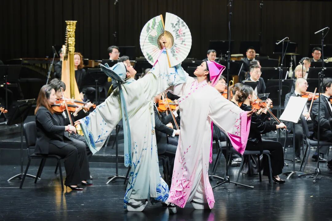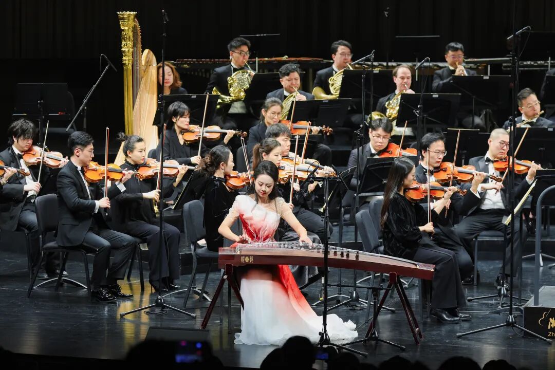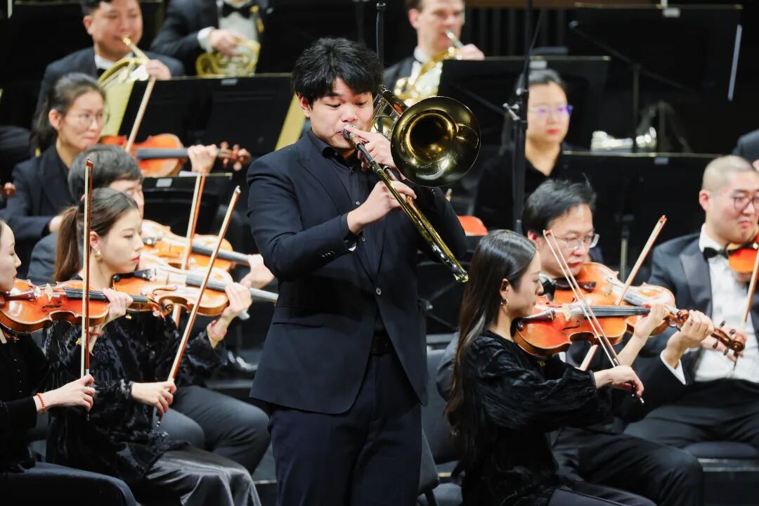 当晚,“臻音育秀—浙音&央音拔尖人才交流音乐会”在浙江音乐学院音乐厅隆重上演。音乐会以“弦歌国韵”“西乐风鸣”“声腔雅颂”“琴键华章”四大篇章为脉络,两校拔尖学子轮番登台献艺。在“弦歌国韵”篇章中,古筝、二胡轮番奏响,以灵动指法与多变弓法勾勒传统韵律,诠释民族器乐的深厚文化底蕴;“西乐风鸣”篇章里,单簧管、小提琴、低音长号等西洋乐器各展所长,独奏、重奏形式兼备,充分展现西方经典音乐作品的独特艺术魅力;“声腔雅颂”篇章汇聚歌剧、民族歌剧、越剧等多元声乐艺术形式,传统戏曲与现代声腔艺术的韵味打动全场观众;“琴键华章”篇章中,钢琴演奏爆发力与细腻度兼具,尽显键盘乐器的丰富表现力。音乐会在大合唱《我爱你中国》中落幕,激昂的旋律凝聚起青年学子的家国情怀,赢得全场经久不息的掌声。