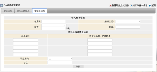 (一)教务系统填写学籍卡