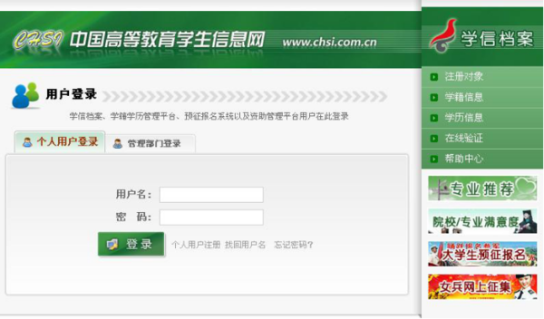 第一步:登录中国高等教育学生信息网:http://www.chsi.com.cn/ 并点击右边栏目的“学历电子注册图像校对”选项(如下图);