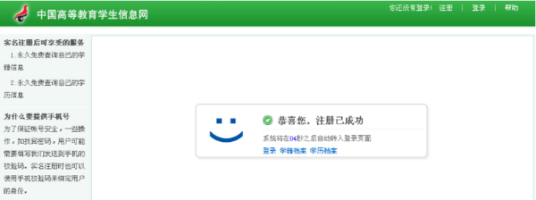 注册成功后,网站会弹出实名注册成功的提示(如下图);
