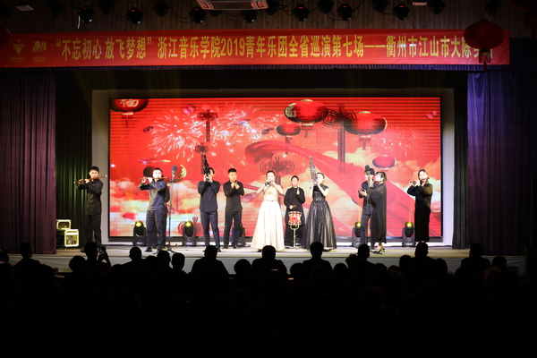 “这是我们今年巡演的最后一站,我认为也是最有意义的一站。”据浙江音乐学院周杰老师介绍,浙江音乐学院2020青年乐团由国乐团、管弦乐团组成,参与巡演的还有舞蹈团和越剧表演团、组唱、独唱等。这是浙江音乐学院学生以巡演形式开展毕业实习的第5年,5年来,青年乐团走遍全省各地,累计演出50多场,以饱满的热情、精湛的技艺全面展现浙江音乐学院的教学水平,受到广泛好评。在文昌镇王家源村的活动当天,整场演出以“唱响主旋律、放飞中国梦”为主题,包括国乐、管弦乐、越剧、音乐剧、声乐、流行歌曲、舞蹈等在内的15个节目先后登台,赢得了台下掌声不断。