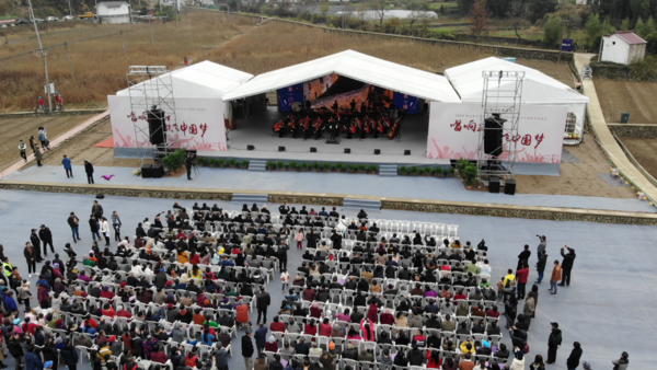 “我的爱情像杯美酒,心上人请你把它接受……”一曲优雅的国乐乐团演奏伴随着清澈悠扬的歌声,荡漾在文昌镇王家源村的露天田野之上。11月29日上午,第三届杭州千岛湖高铁旅游节隆重开幕,本次旅游节以音乐会为载体,来自2020浙江音乐学院青年乐团的两百余名师生共同参与演出。