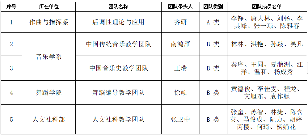 为进一步加强一流专业和一流课程建设,加强对在建教学团队的管理、监督,保证教学团队建设质量,根据《浙江音乐学院教学团队建设与管理办法(试行)》(浙音〔2021〕1号),学校决定开展对2021年度教学团队中期检查工作。现就有关事项通知如下: