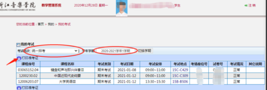 1.每位学生都有一张专属的期末考试准考证,准考证内容有关该学生本学期所有考试科目的考试时间、地点、座位号、试卷序号等(请注意不要选错学期)。