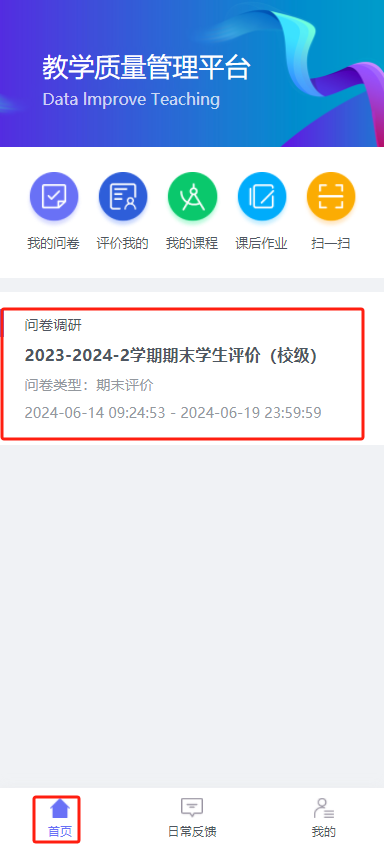 为充分发挥学生对课程教学效果评价的作用,督促教师更加重视教学、研究教学,不断优化教学过程,提高教学质量。现决定在平台开展2023-2024学年第二学期期末教学质量评价工作。现将有关事项通知如下:
